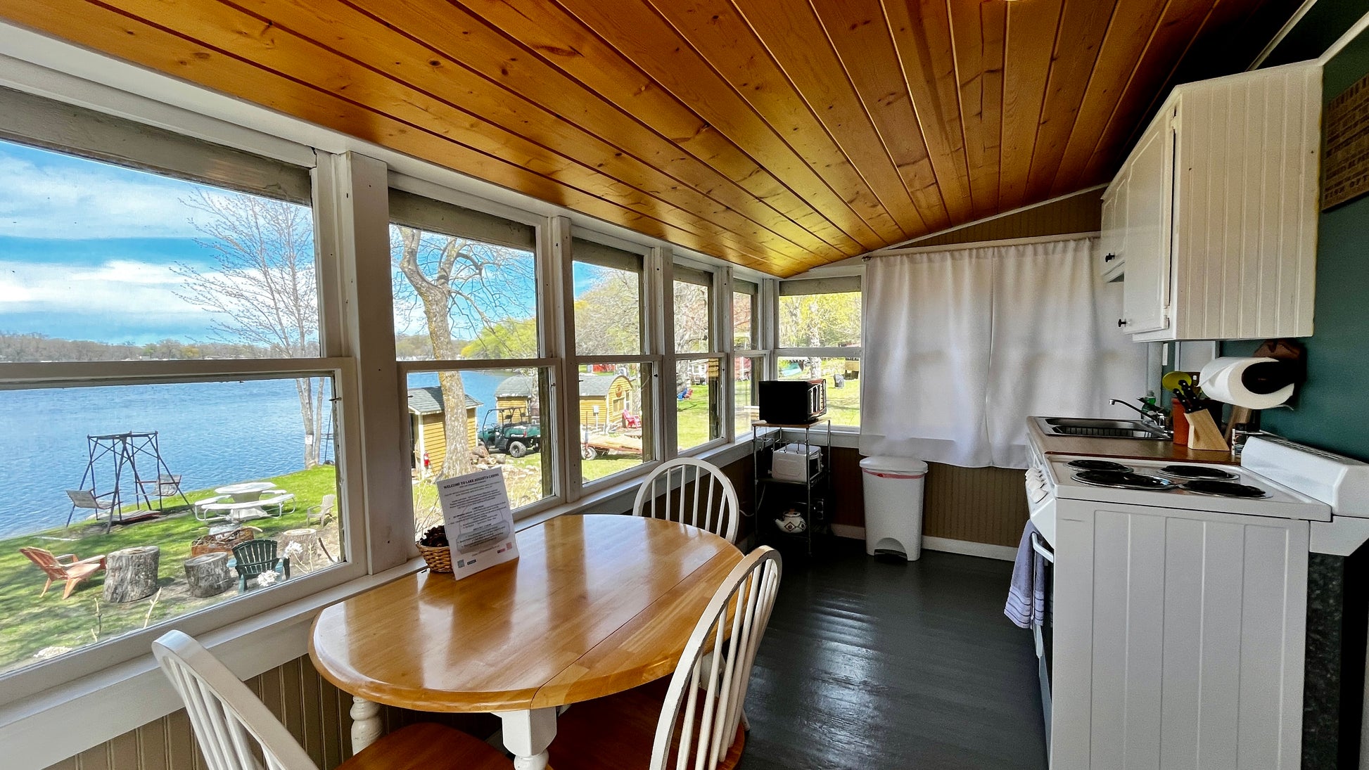 Guests have access to the cabin grounds, featuring 400 feet of lakeshore in 4 acres of wooden land and a unique natural spring. Lake Augusta Cabins provides multiple summer cabins, so you may expect to see other guest in the shared spaces such as the beach, docks, parking, etc.